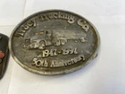 Lot of 2 vintage Tracy Trucking belt buckles. Email with any questions.