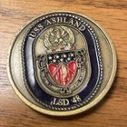 This lot includes two United States Navy USS Ashland LSD 48 challenge coins. These coins are original and were manufactured after 2001. They are part of the Militaria category and are considered current militaria items. The coins are in good condition and have not been modified in any way. They are a great addition to any collection and are sure to please any coin collector. However, the first coin a bit more shiny than the other does have a couple of spots that appears to be a tiny bit of tarnish as shown in photos please review the photos thoroughly before making your choice Shipping USPS ground