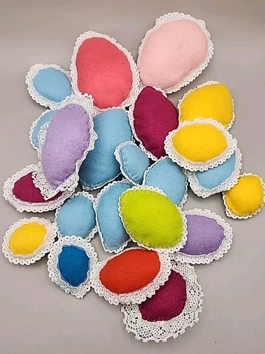 Super cute lot of 21 hand made vintage Easter Eggs! These were made with care and trimmed with vibrant white and colorful lace! They all range in sizes. See photos for exact details and sizing. Please feel free to ask any questions. Thanks for supporting our veteran owned small business 🇺🇲