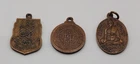 This product is a set of three old round and oval Buddha prayer tokens and pendants. The tokens and pendants are related to Buddhism and can be considered as collectibles. They are designed to be worn as amulets or pendants.