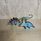 This lot includes three vintage dinosaur figurine toys featuring the iconic Triceratops, Stegasaurus, and Brontasaurus. These toys are made of durable plastic and rubber materials and were manufactured in China. They are perfect for collectors of prehistoric and dinosaur-themed items. The figurines are not handmade and belong to the categories of Collectibles, Animals, and Prehistoric & Dinosaurs. Each toy is designed with intricate details that accurately represent the dinosaur species. This lot is a great addition to any collection and is sure to impress dinosaur enthusiasts.