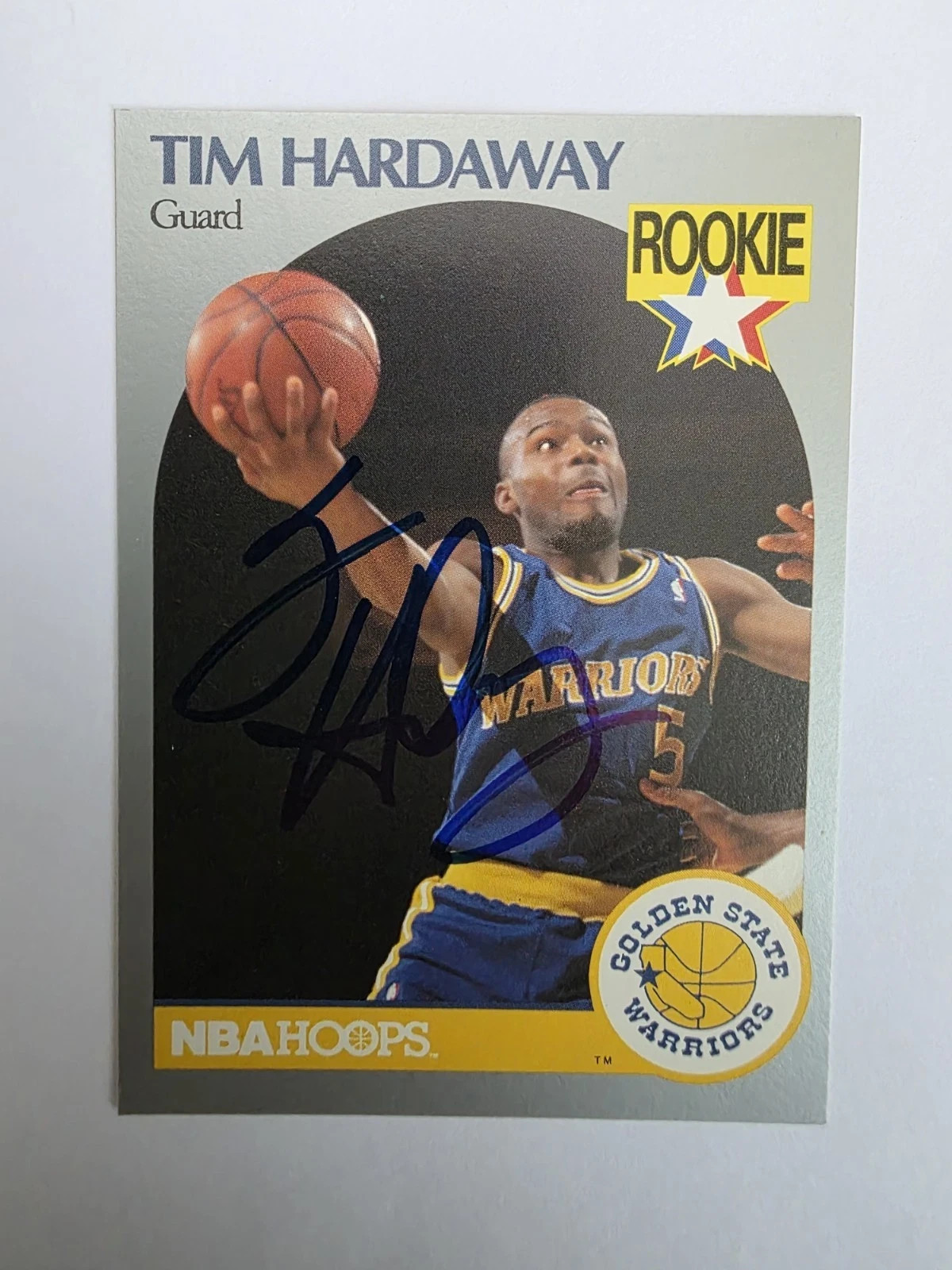 1. 1989-90 NBA Hoops - Larry Brown #102 Autograph Signature Card. 2. 1988-89 Fleer - Michael Cooper #65 Autograph Signature Card. 3. 1990-91 NBA Hoops - Tim Hardaway #113 (RC) Rookie Autograph Signature Card. 4. 1990-91 NBA Hoops - Kevin Johnson #375 Autograph Signature Art Card.