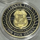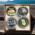 Here are four police officer challenge coins in plastic capsules, perfect for collectors of militaria. These coins are original and the theme of the coins is police officer, making them a great addition to any collection. The coins are in uncirculated condition. They are perfect for anyone interested in collecting original items. The coins are a great way to show support for the police and are sure to be a valuable addition to any collection.