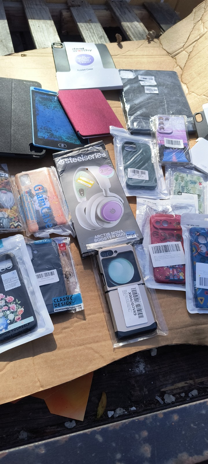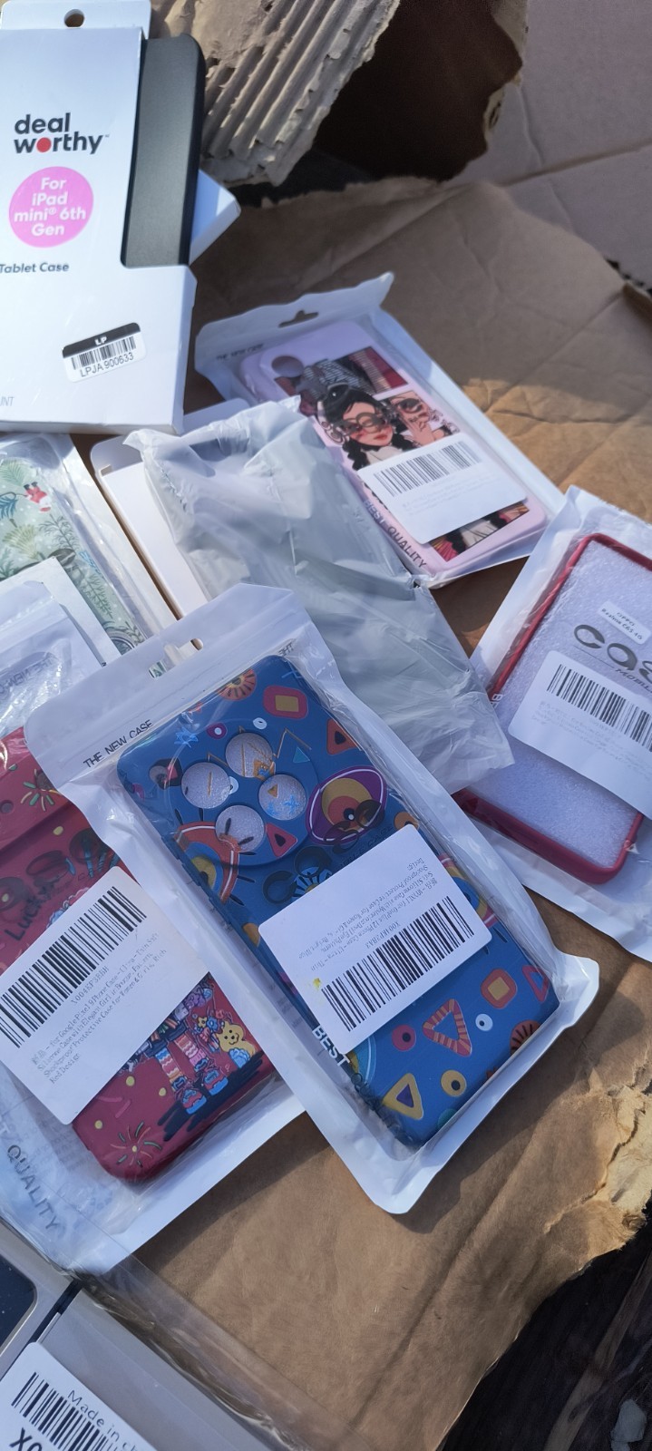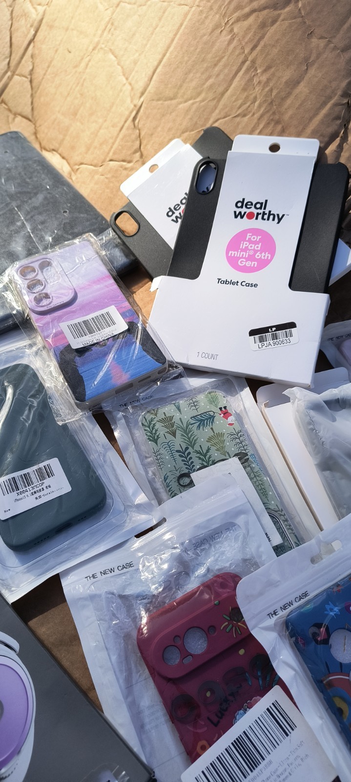 This lot includes over 40 pieces of iPhone, iPad, and tablet covers and cases, as well as earphone covers. The covers are made of a variety of materials, including flexible and waterproof options. There are smart cases with anti-scratch properties, and washable covers for added convenience. The brand is specifically I-phone, offering a range of protective accessories for various electronic devices.