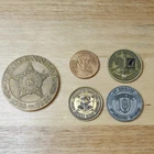 The product is a set of 5 original challenge coins related to military, secret service, and presidential themes. These coins are collectible items that hold significance in the realm of militaria. Each coin likely has a unique design and symbolism representing the respective organizations or themes associated with them. Perfect for collectors or enthusiasts interested in military memorabilia.