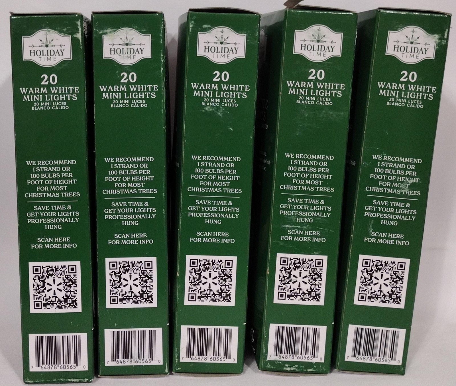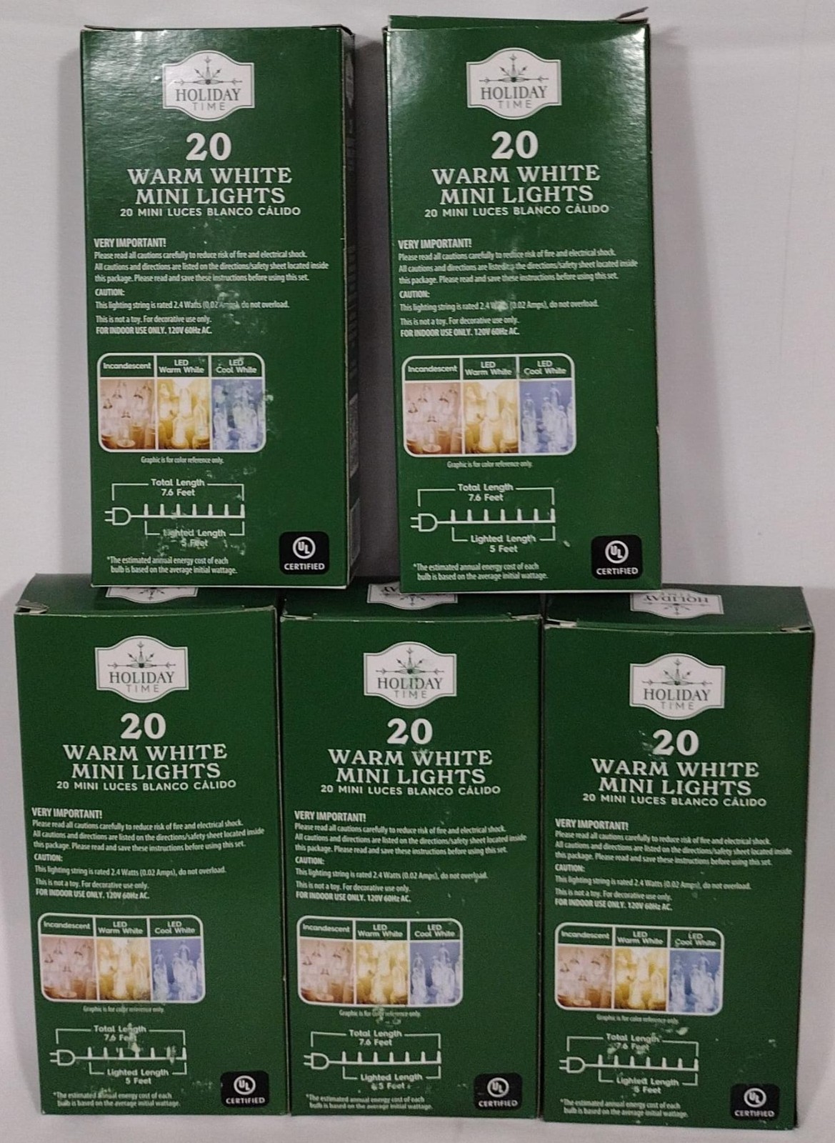 Lot Of 5 Holiday Time Warm White LED Mini Lights 20-Countn7.6 ft This product is a set of 5 Holiday Time Warm White LED Mini Lights with 20-count bulbs, Measuring 7.6 ft in length. The lights are designed for use both indoors and outdoors, making them versatile for decorating during Christmas. Powered by batteries and controlled with a wall switch, These LED lights are energy-efficient and feature a festive holiday theme. The warm white light color and bulb shape add a cozy and traditional touch to any space, Making them perfect for porches and indoor rooms during the holiday season.