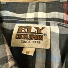 This lot of 5 vintage Ely Cattleman pearl snap shirts for men features a Western theme with embroidered accents, making them a stylish addition to any wardrobe. Made of a blend of polyester and cotton, these button-up shirts have short sleeves and a point collar, giving them a classic cowboy look. The multicolor design adds a fun and unique touch to each shirt, perfect for casual or dressed-up occasions. With a regular fit and size M, these Ely Cattleman shirts are sure to become a favorite for those who appreciate vintage Western style. 1 shirt does have a patch to the back of the left sleeve, see photos