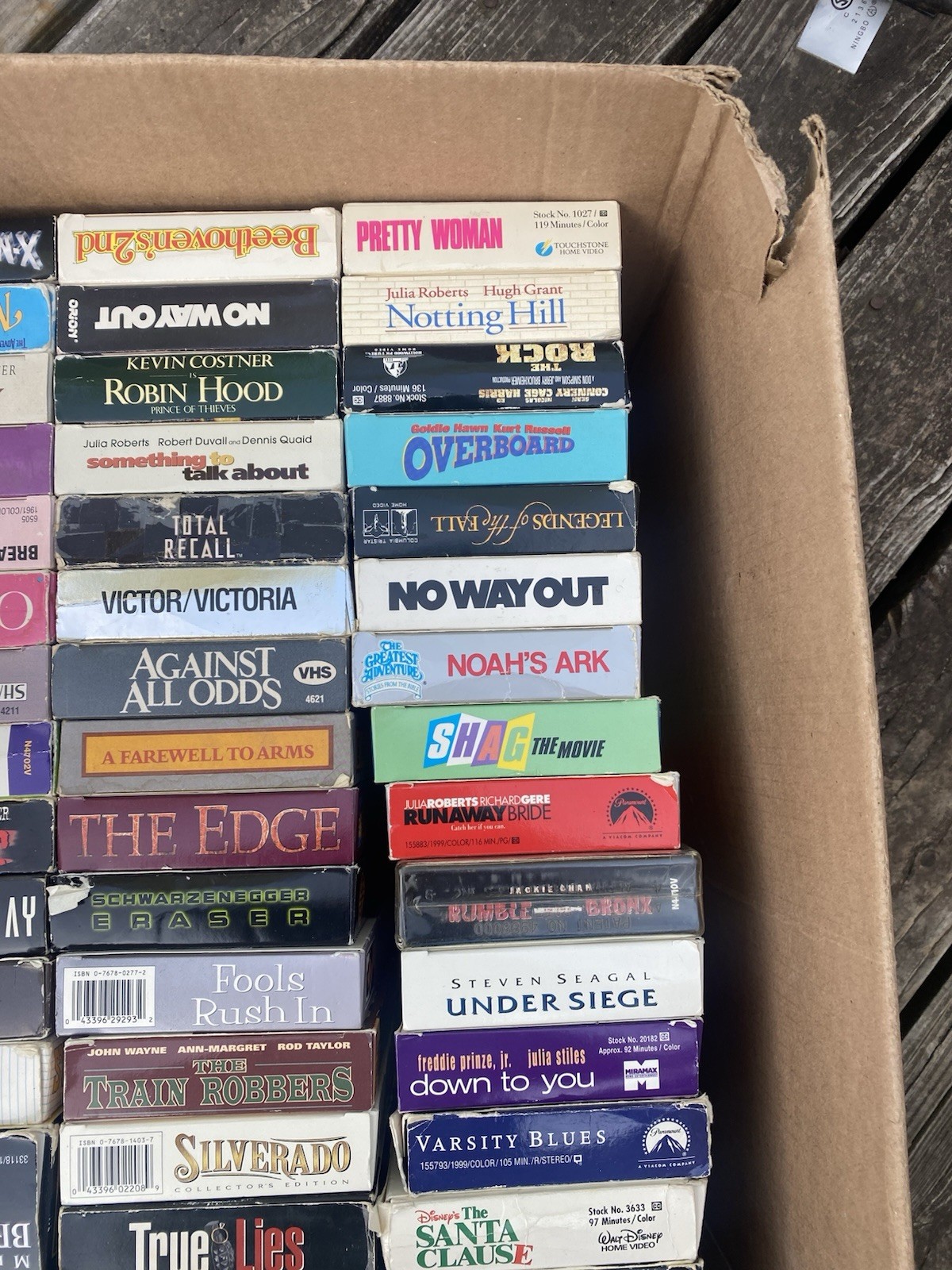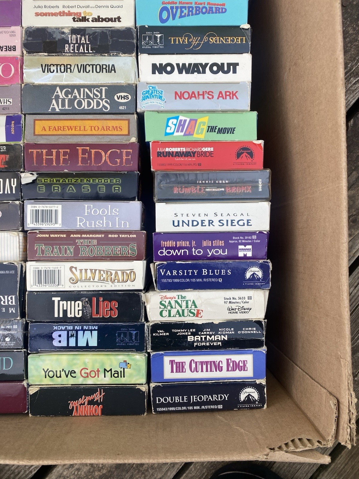 Sold as is all tapes have been inspected.This product is a lot of 50 mixed VHS tapes with movies in good to very good condition. The tapes include a variety of movie titles, providing a diverse selection for viewers to enjoy. Perfect for movie enthusiasts looking to expand their collection with a mix of films across different genres and titles.