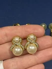 Lot Of 6 Vintage Costume Earrings Gold Tone Faux Pearl Hearts Sea Shells
