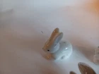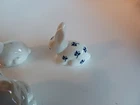 This lot consists of three small porcelain figurines of rabbits or bunnies. These collectibles are perfect for any fan of farm and countryside themes, and would make a great addition to any animal figurine collection. Crafted with care, these figurines are sure to please any lover of rabbits and add a touch of charm to any home decor. Range from 2 to 2.5 inches.
