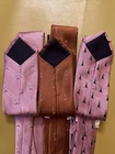 Lot 3 New Golf Ties by Rooster You get 2 pink ties and 1 rust colored tie The ties are made of 75% Silk 25% Polyester They make a great gift Add some style to your wardrobe with these Rooster golf-themed neckties. Made from a luxurious silk blend fabric, these ties come in a set of three with a multicolor pattern and feature golf balls, sticks, and the iconic 18th hole. Perfect for any golf enthusiast or for adding a touch of personality to your formal attire. These ties are of classic length and width, and are attached by tying. Buy with total confidence from a seasoned Ebayer who ships fast Happy Shopping!