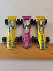 Good condition with most flaws on the Tail fins & the Purple/Violet colored Cars tail fin There are two variations of Yellows car that have different colored Stripes on the hood. Please see Detailed Item Photos for Item Condition and Specifics Fast Shipping The Lot Set of 3 VTG Matchbox 16 Formula 1 Race Cars from 1970 features blue and orange diecast vehicles with a race car theme. Made by Matchbox in the United Kingdom, these vintage cars are part of the Matchbox Superfast series. The set includes a No.34 Formula 1 car in yellow and purple colors, suitable for children aged 4 and up, making it a timeless collectible for fans of diecast and toy vehicles.