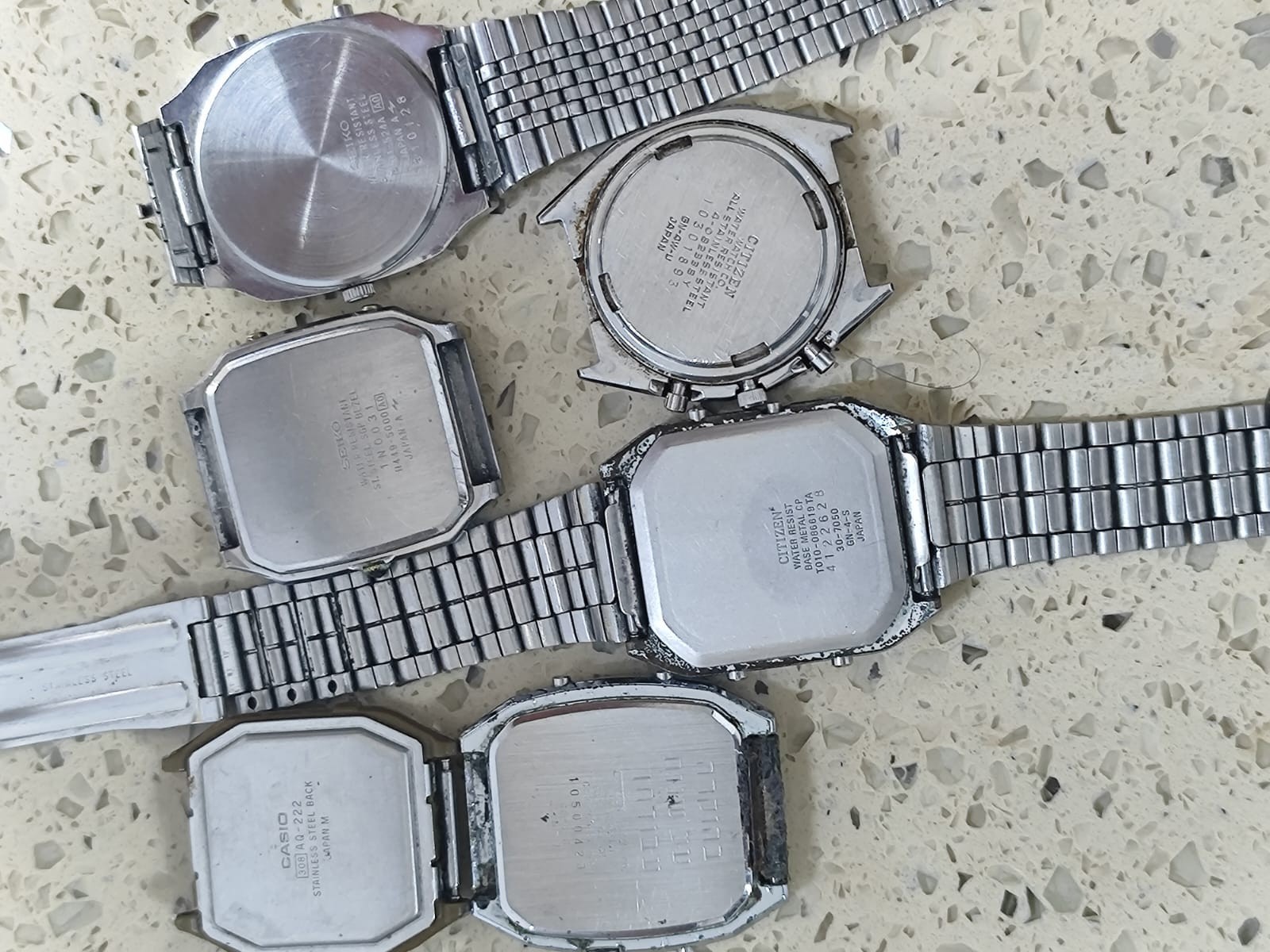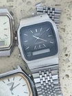 This lot contains vintage analog and digital watches from well-known brands such as Seiko, Citizen, and Casio. Specifically included are Seiko Citizen Promaster watches from the 1970s, made of stainless steel with a silver color. These watches are not in working condition and have not been tested, making them ideal for parts or as collectibles for enthusiasts. The lot includes various band widths of 20mm and 19mm, suitable for men's wristwatches. Made in Japan, these watches are part of the diver theme and come with a bracelet band type.