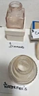 Lot of 12 Vintage Ink Bottles. Various manufacturers. 3 Sanford's - 2 conical bottles #63, #8 - 1 square #0 3 Carter's - 1 purple round with bubbles # 183 or #185 - 1 square 2oz. 59cc -?? 1 Paul's Safety Bottle & Ink Co. N.Y. (around shoulder) - violet squat bottle 1 Skrip - bottle top is rusty, but can read "Tighten ??? tip???". Pat'd 1759866 1 Waterman's Ink - 2oz. (This container made in U.S.A.) - a little rough at the top of the neck. 1 Diamond Ink Co. - 1oz. Milwaukee - light purple #22 on bottom 1 Justrite Thinner and Cleaner Bottle with Box and instruction sheet - bottle has label. 1 I just cannot read the bottom of the bottle Bottles will be carefully wrapped for shipping to their new home.