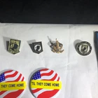 For sale is this lot of POW/MIA Items. Please see pictures for all items, and full item condition. Let me know if you have any questions. Included is 16 items total: (4) Lapel pins [top left of main photo] (2) Til they come home buttons [mid-left] (6) Iron on Patches [right side of photo] (4) Stickers [bottom left]