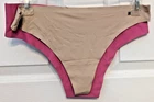 You are buying two pairs of new panties. The beige pair from Lucky Brand and are a thong style The dark pink ones are from Thalia Sodi and they are a bikini style. Both pairs are a size large.
