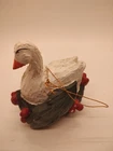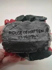 This vintage lot of House of Hatten ornaments include: 1989 Partridge in a Pear Tree. No damage noted. Maybe some fading of color. 5" 1989 Swans Swimming. No damage noted. Colors still bright. Maybe some minor paint loss in very small spots. 2002 Red Bird atop pear with handing tassell. 9" from top to end of tassell. I found no issues with this one.