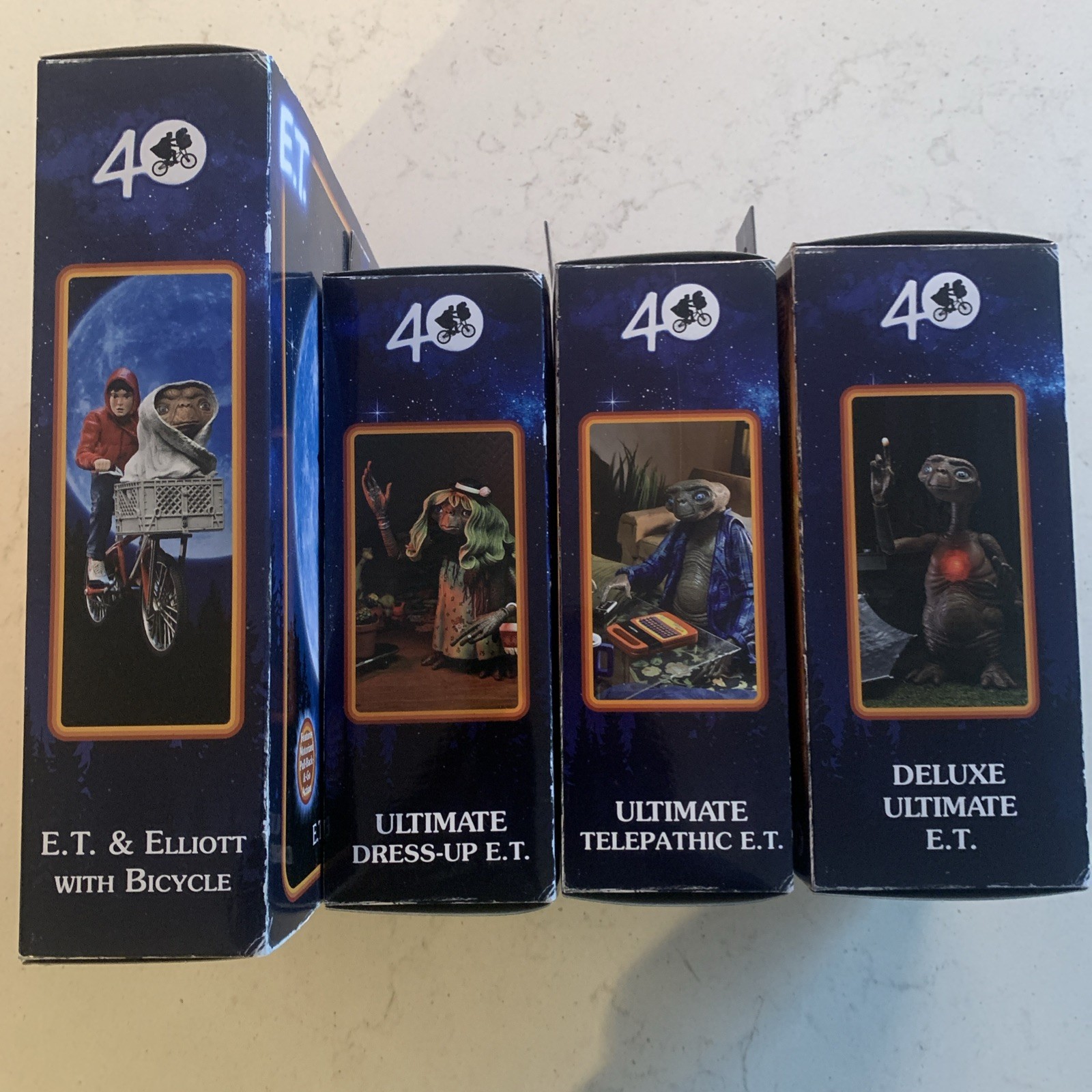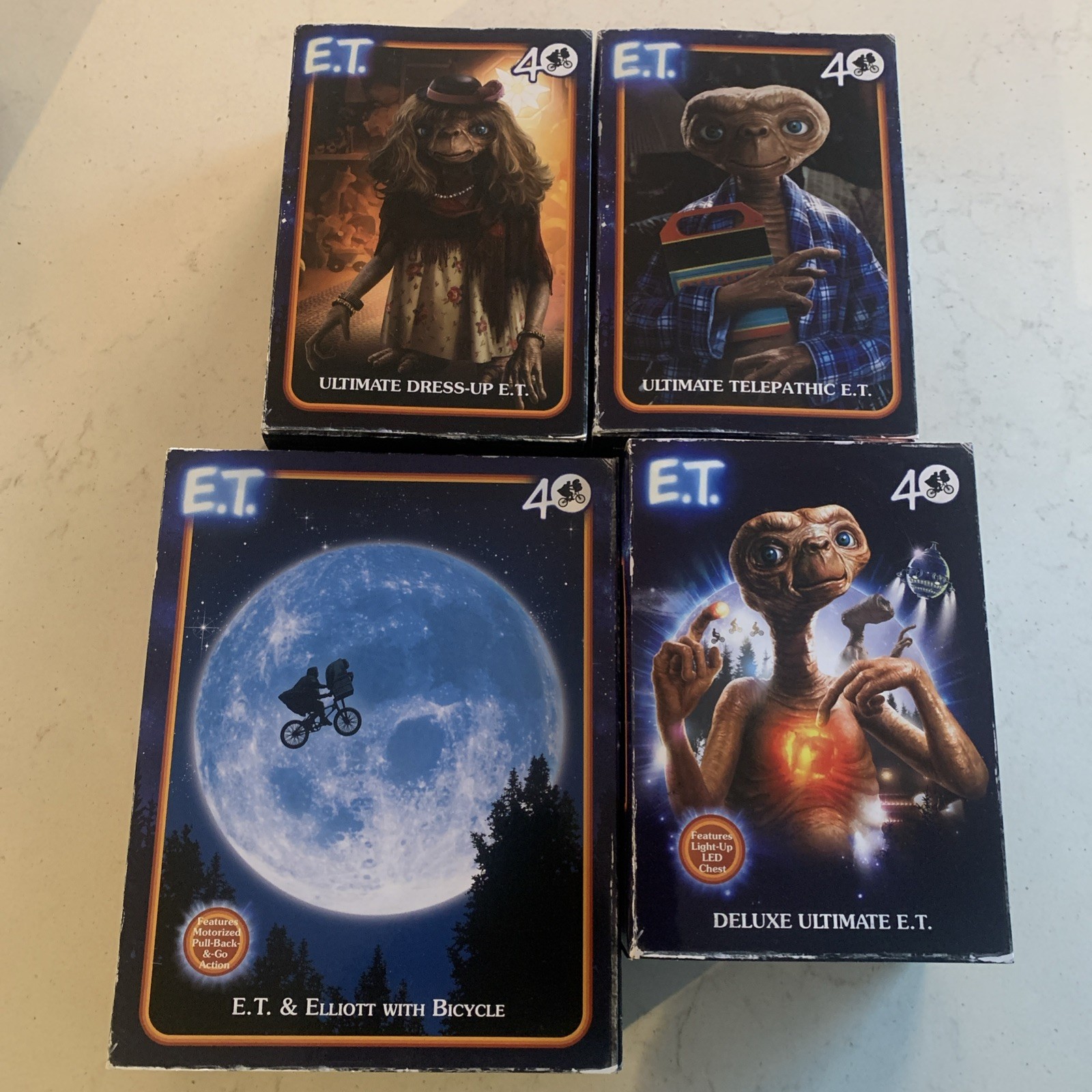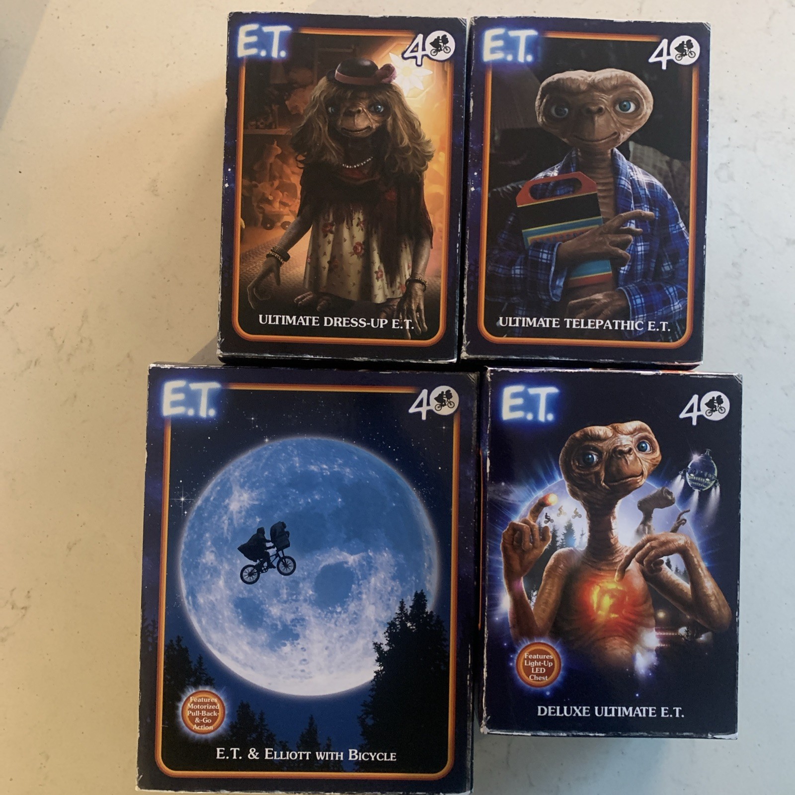 Celebrate the 40th anniversary of E.T. the Extra-Terrestrial with this ultimate action figure set from NECA. This set includes 4 brand new action figures of the beloved character E.T., standing at 15.50 inches tall and in a 1:12 scale. Each figure is part of the Animated Adventures series and comes in its original boxed packaging, perfect for collectors and fans of the E.T. franchise. These officially licensed figures are a must-have for any fan of the film and are a great addition to any action figure collection.