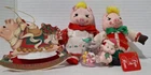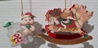 You get all four Pig ornaments shown. Two are House of Hatten 6" plush type ornaments. One is a Santa sleigh type rocking Christmas piggy One is a naked baby pig with Santa's hat and a candy jar. Made by Trim a Home inscribed "From Carol 94"