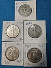 This lot includes five 50 cent coins featuring the Liberty Walking design. The coins were minted in San Francisco, Denver, and Philadelphia between 1943 and 1947 and have been circulated. The denomination of the coins is 50 cents and they are composed of 0.9 fineness silver. The coins have not been graded or certified. The KM number for this set is 2790. These coins are a great addition to any coin collection and a piece of American history. The coins have been SIGMA verified.