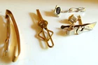 Lot of men's tie and shirt jewelry accessories Includes: 5 various gold and silver colored metal pins, clasps, tacks, clip ons 2 pr of cuff links- 1 silver & 1 silver with white stone Swank, McCurroch, Hickok All in very good condition. No issues