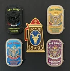 Lot of (5) Navy Challenge Coins: (4) USS CHIEF - Firefighting Training Division Coins ( 2.5" tall, 1.5" wide, 5mm thick, 2.2oz weight) (1) CPO Beer Stein Coins ( 3" tall, 1.5" wide, 5mm thick, 2.1oz weight) Front / back of coins are hand-painted / acrylic-coated. Photos displayed shows front and back of five individual coins. FREE AND FAST SHIPPING! (USA / FPO / APO)