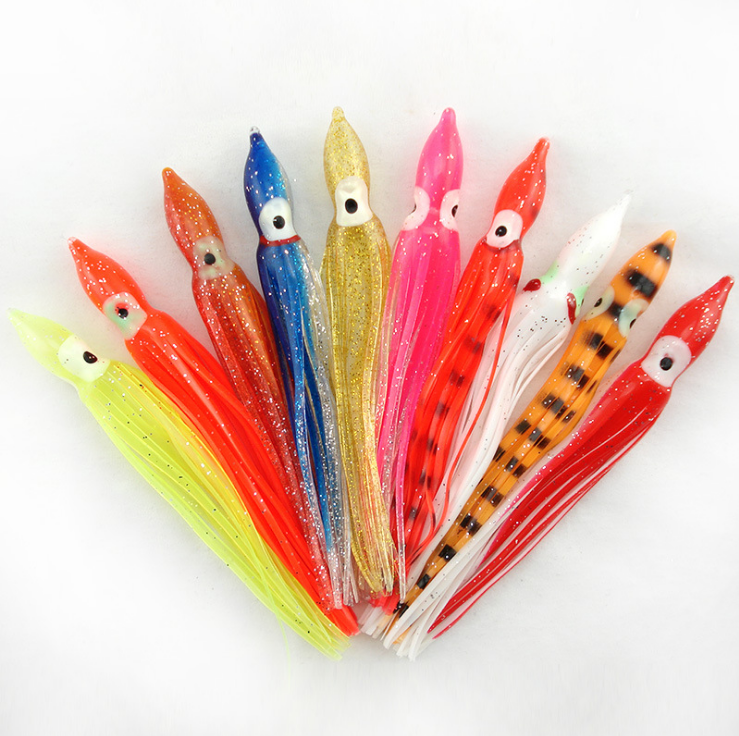 Product Overview 50pk Octopus Squid Skirt Lures Bait Hoochies Saltwater Soft Fishing Lures 4-24cm Features: Octopus Squid Skirt Baits Lure High quality Soft PVC Material Different Colors Mixed. Length/weight: 4cm/0.43g, 5cm/0.83g, 6cm/1.03g, 9cm/2.15g, 10cm/3g, 12cm/4.1g, 14cm/6.6g, 15cm/7.25g, 16cm/9.71g, 18cm/11g, 20cm/15.5g, 22cm/23.33g, 23cm/22g, 24cm/21.8g Packaging: Plastic bag Package Plastic Artificial Lure Lifelike Imitation Perfect for Fishing Travel Pacakge contain: 50pcs, in mixed colors since we have too many colors, so we will send all color randomly, can not select colors.