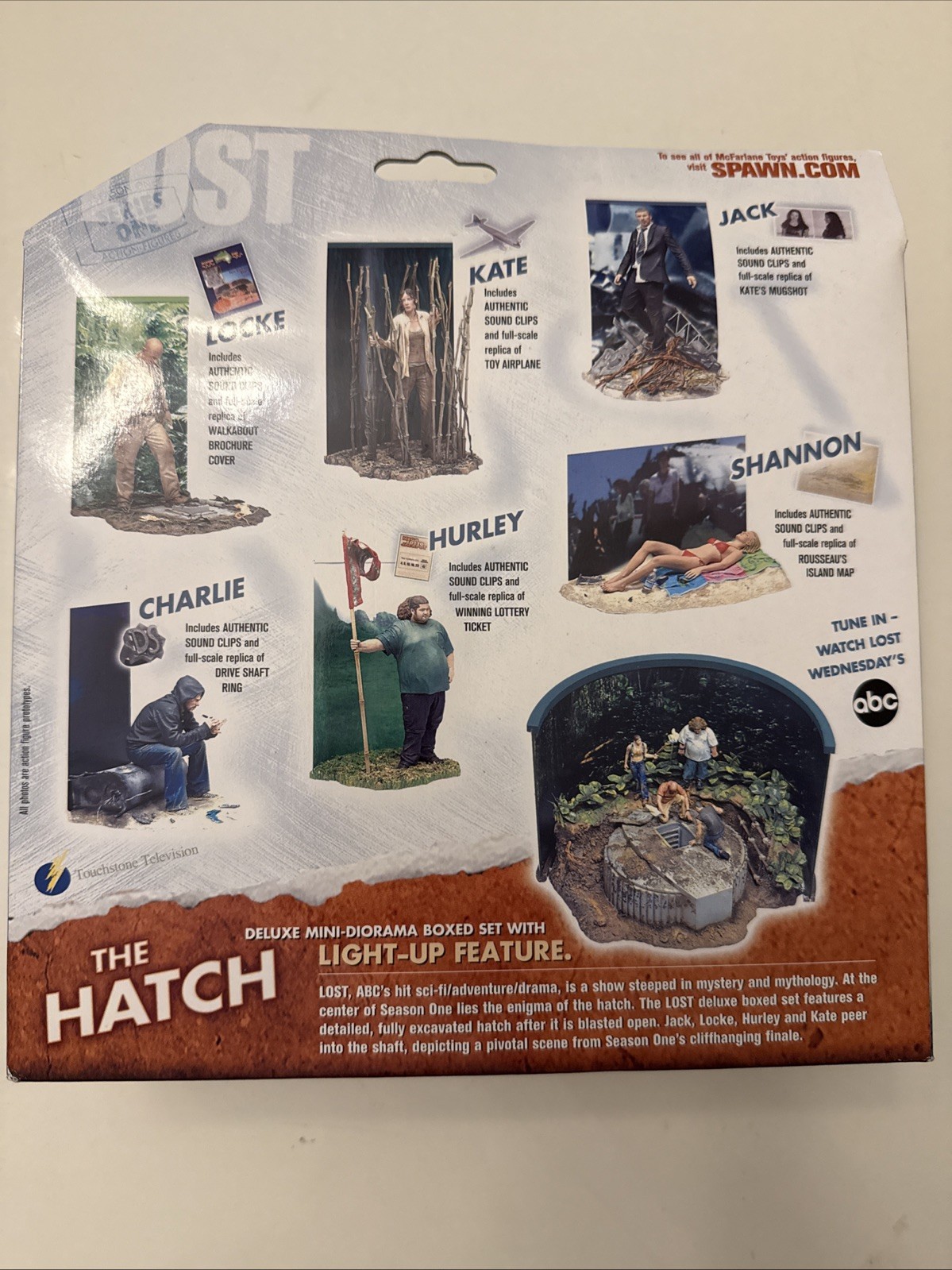 This product is a lot of 6 Lost ABC TV series 6" action figures featuring characters such as Shannon, Locke, Charlie, Kate, Hurley, and Jack. These figures are from the franchise Lost and are made by McFarlane Toys. They are boxed and come in original packaging, making them ideal for collectors or fans of the show. Each figure stands at 6 inches tall and represents a unique character from the popular TV series. ****All New Box Damaged *** New Box Damaged