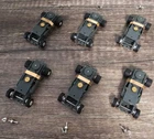 This New Lot of 6 Auto World ThunderJet Ultra G Slot Car Chassis is brand new. I will include the screws pictured above in a bag. I will combine shipping on multiple auctions. These cars also feature an adjustable wheel base