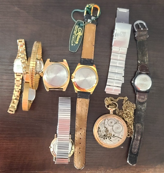 Lot of 8 Citizen, Croton, Seiko, Waltham and others watches for parts or repair. Sell As Is. Please view the pictures to get the most accurate look at the item condition, and feel free to contact me with any questions that you may have. Shipping: • Items will ship in 3 business days • USPS Priority • Includes tracking number • No return no exchange • Payment: PayPal, eBay Feel free to contact me with any questions! Please contact me if you need additional pictures
