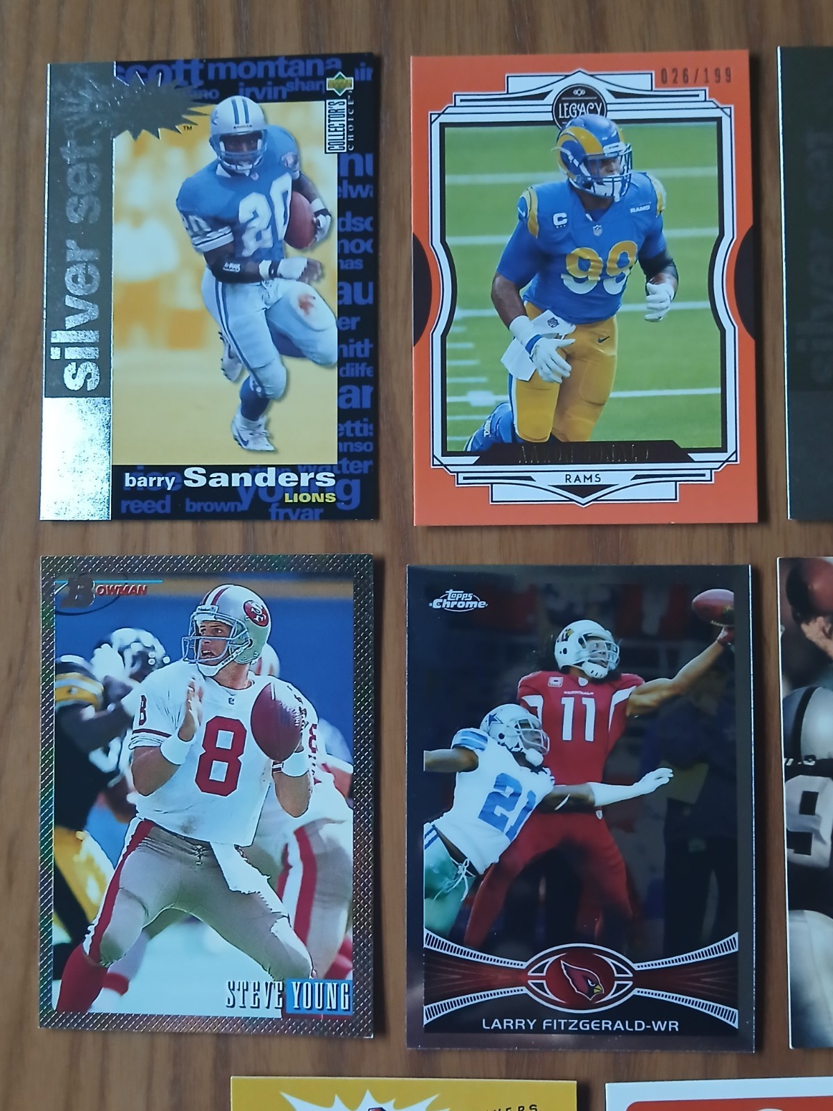 $ 1.06Lot of 8 - NFL Cards w INSERTS - JOE MONTANA JUSTIN HERBERT BARRY SANDERS HURTS