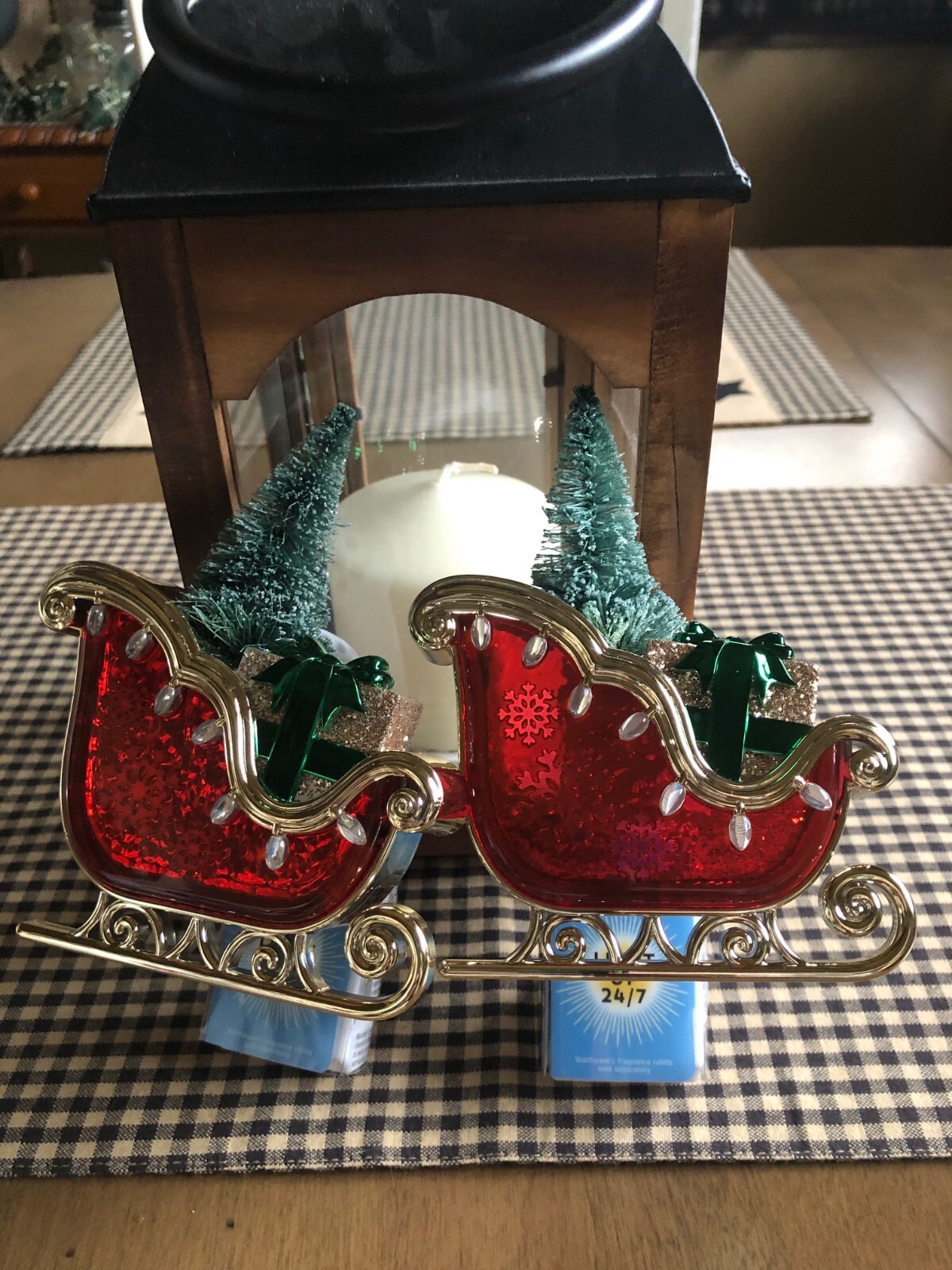 9 NEW Wallflower Plug Ins. Sleighs with Trees-(2)-Night Lights Puppy/Gift-Scent Control-Low, Medium, High Control Elf Snowman with Chain-Night Light Snowman with Blue Scarf-Night Light Polar Bear with Crown Ornaments-Night Light Santa Mail-Night Light Comes from a smoke free home