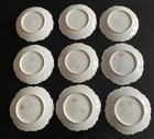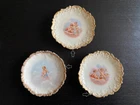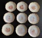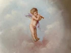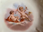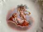 Lot of 9 Limoges Laviolette & W Guerin Cherub Cupid Plates Hand Painted France 4 plates (with 2 cherubs) W Guerin - 5 3/4" diameter 5 plates (with one cherub) Laviolette - 5 5/8" diameter Items weight 2lb 10oz (without packaging materials) Each Plate shows a different cherub(s) in dreamy landscapes as a background. Each plate has a gold border with sawtooth edging and textured swirls. 3 plates have small painted chips on the border. 2 plates have chips on the back side. Please see pictures for details.