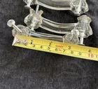 SEE PHOTOS- 6 like pulls- one has chip out of base but does not affect function 1 similar but slightly different 2 similar but also slightly different All need a good scrub All measure 3” from hole to hole Message me with any questions