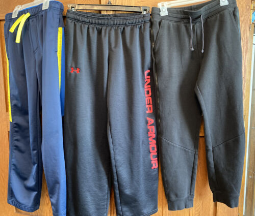 Lot of Under Armour and Athletic Works Boys Pants Size 10-12. Slight wear on the knees of the UA pants, see pics for more details. All come from smoke free home. Condition is "Pre-owned". Shipped with USPS Priority Mail.