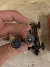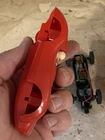 Lot of Vintage Strombecker slot car parts 2 Eldon slot car bodies 1 strombecker body 1 strombecker chassis w/ tested motor 1 strombecker set of axle and rims 1 strombecker motor tested Both motors work 2 Eldon slot car bodies