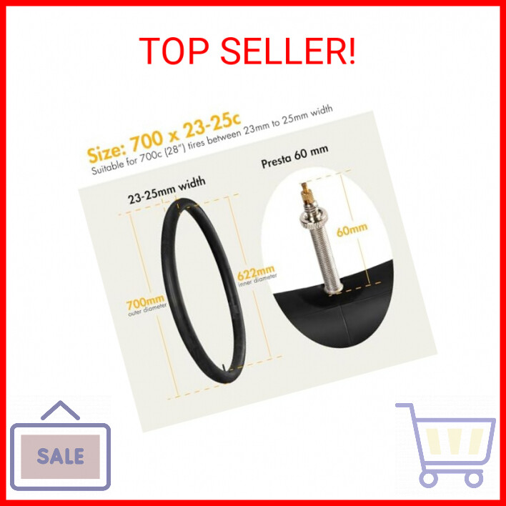 LotFancy 700x23c/25c Bike Tubes, 2 Pcs 700x25c 700x23c 23-622 25-622 Road Bike Tubes, FV42 FV60 FV80 Presta Valve - 【Size】 Our 700c(28") bike tubes are suitable for bikes with wheel sizes: 700c x 23c - 25c. Fit all the following sizes: 28 x 0.9, 28 x 7/8, 28 x 1.00, 28 x 1-1/16; (French size: 700x23C 700x24C 700x25C); ( ETRTO: 23-622 / 24-622 / 25-622 ) - 60mm Presta Valve Stem - 【High Quality】Our bike inner tubes are made of high-quality butyl rubber material. With good resistance to heat and harsh weather. It has better air tightness and durability, which extends tire life due to restricted air loss - 【Pick the Right Tube Size】Check the sidewall markings on your tire. Select the tube that has the same diameter as your tire. Tire width should fall into the range of tube width - 【Installation Tips】Inflate a little air before installment, to avoid crack or damage during installment; Install the valve correctly, which must be 90° with steel, and the nut must be well locked; After installment, please check the tube is in the right position between steel and tire, make sure the tubes are not clamped by them. Inflate the air according to the pressure standard of the tire The Fine Print Payments We accept the following payment methods Visa/Mastercard PayPal Apple Pay Google Pay Please pay as soon as possible after winning an auction, this will allow for quicker shipping times! Returns We accept returns . You can return unopened items in the original packaging within 30 days of your purchase with receipt or proof of purchase . If 30 days or more have passed since your purchase , we cannot offer you a refund or an exchange . Upon receipt of the returned item , we will fully examine it and notify you via email , within a reasonable period of time , whether you are entitled to a return . If you are entitled to a return , we will refund your purchase price, and a credit will automatically be applied to your original method of payment . Only regular priced items may be refunded . Sale items are non -refundable . Buyer is responsible for return shipping costs + a 20% restocking fee. Shipping Shipment processing time All orders are processed within 2-3 business days. Orders are not shipped or delivered on weekends or holidays. If we are experiencing a high volume of orders, shipments may be delayed by a few days. Please allow additional days in transit for delivery. If there will be a significant delay in shipment of your order, we will contact you via email or telephone. Shipping rates & delivery estimates Shipping charges for your order will be calculated and displayed at checkout.