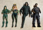 This is a loose lot of four DC Green Arrow Deadshot Action Figures from the Marvel Legends Enchantress series. These figures are perfect for any fan of the DC Universe and come with a variety of items included. Each figure is designed with intricate details and stands at approximately 6 inches tall. The scale of these figures is 1:12 and they were manufactured in 2006 in China. This lot includes figures from the Identity Crisis series and is an original licensed reproduction. The Green Arrow character is featured in these action figures and they are perfect for collectors or fans of the Arrow TV show. This lot of figures are in preowned condition, do not feature any accessories, and the larger green arrow figure is missing a leg. Please see ALL photos for a better idea on condition, any measurements, or details to the figures.