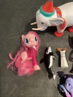 13 small toy figures, including PJ Mask figures, Vamporina figures, McDonald’s Spirit the horse, My Little Pony, Shopkins cutie car convertible, Jet Ryder Paw control , party hat elephant , and more. See pictures for details.
