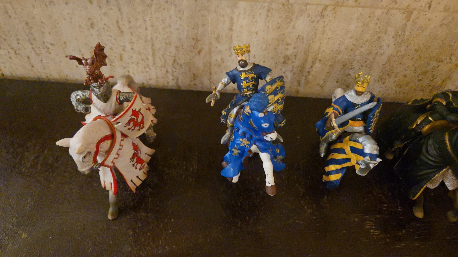 "Discover an impressive collection of medieval knights and warriors in remarkable condition, perfect for toy collectors and enthusiasts alike. Some of these figurines originate from the retired Chleich set 'World of Knights,' making them rare and highly sought after. Notably, the figurines are scaled at approximately 1/18. Additionally, this collection includes a Viking warrior figurine. The Papo brand, a French company renowned for its meticulous craftsmanship, has hand-painted these exquisite figurines."