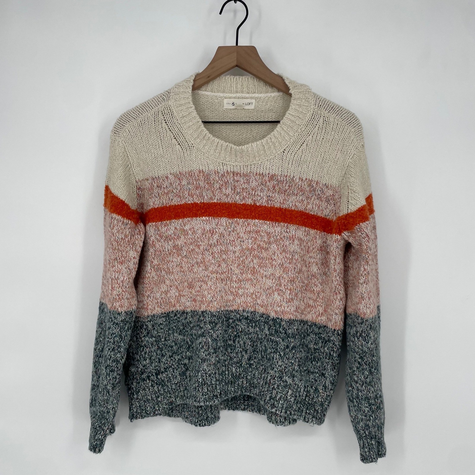 A cozy and colorful striped colorblock knit sweater from Lou & Grey for Loft. This sweater features a round neckline and long sleeves. Its relaxed fit and warm hues make it perfect for everyday wear or a casual weekend outing. Measurements: • Chest: 20 in • Length: 23 in Style: Pullover Department: Women Material: Cotton Blend, Acrylic, Polyester, Nylon, Spandex Neckline: Crew Neck Sleeve Length: Long Sleeve Type: Sweater Features: Stretch, All Seasons Pattern: Striped Fabric Type: Knit Season: Fall, Winter Fit: Classic Occasion: Casual Garment Care: Machine Washable Keywords: Lou & Grey, Loft, colorblock, striped, knit, sweater, pullover, cozy, casual, weekend, fall fashion, winter wear, everyday, relaxed fit All orders are shipped the same business day or the next business day. Thank you for supporting my small business.
