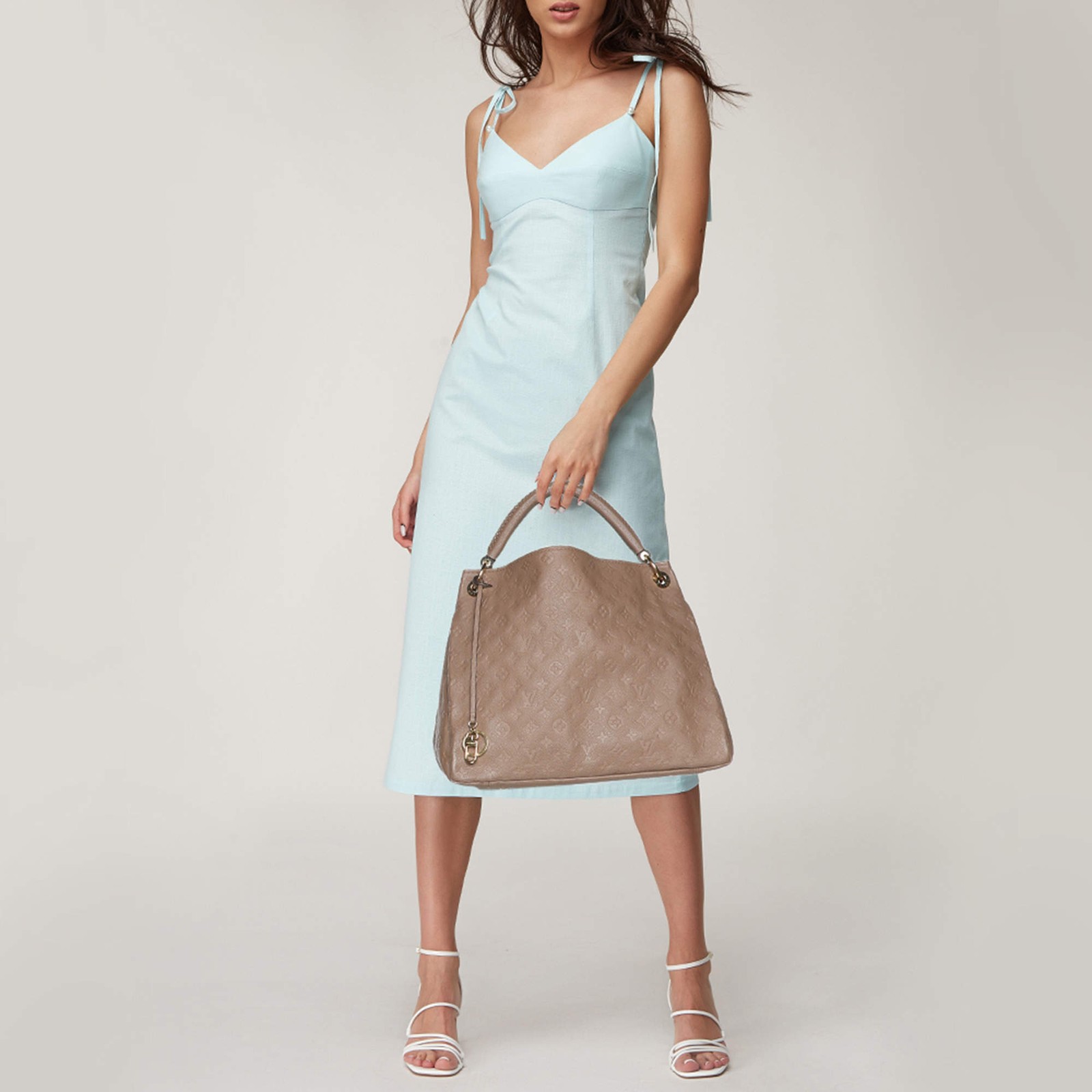 Our eBay Store About Us Contact Us Add to Favorite Sellers Louis Vuitton Beige Monogram Empreinte Leather Artsy MM Bag Designer bags are ideal companions for ample occasions! Here we have a fashion-meets-functionality piece crafted with precision. It has been equipped with a well-sized interior that can easily fit all your essentials. Product Details Brand Louis Vuitton Includes The Luxury Closet Packaging, Info Booklet Certified by The Luxury Closet This item has gone through a detailed authentication process overseen by our experts. We offer a lifetime guarantee of authenticity on all our items. How We Check The in-house team of experts at The Luxury Closet is highly trained to verify the authenticity and the condition of the luxury products. They ensure that only 100% authentic items are put on sale.The evaluation process is unique with its own mix of assessment criteria and differs according to the category. Each item is evaluated based on the following combination of hallmarks, hardware, stitching, symmetry, material, craftsmanship, stamping, codes, hologram stickers, and packaging. Our authenticators also check if the items have been modified or amended (e.g., aftermarket diamonds, replaced batteries, repaired bags, etc.) Please note that this handbag may have a perfume scent, as it was stored and packaged in Dubai where such fragrances are commonly used. International Buyers Import duties, taxes and charges are not included in the item price. These charges are the buyers responsibility. Please check with your country’s customs office to determine what these additional cost will be prior to buying.