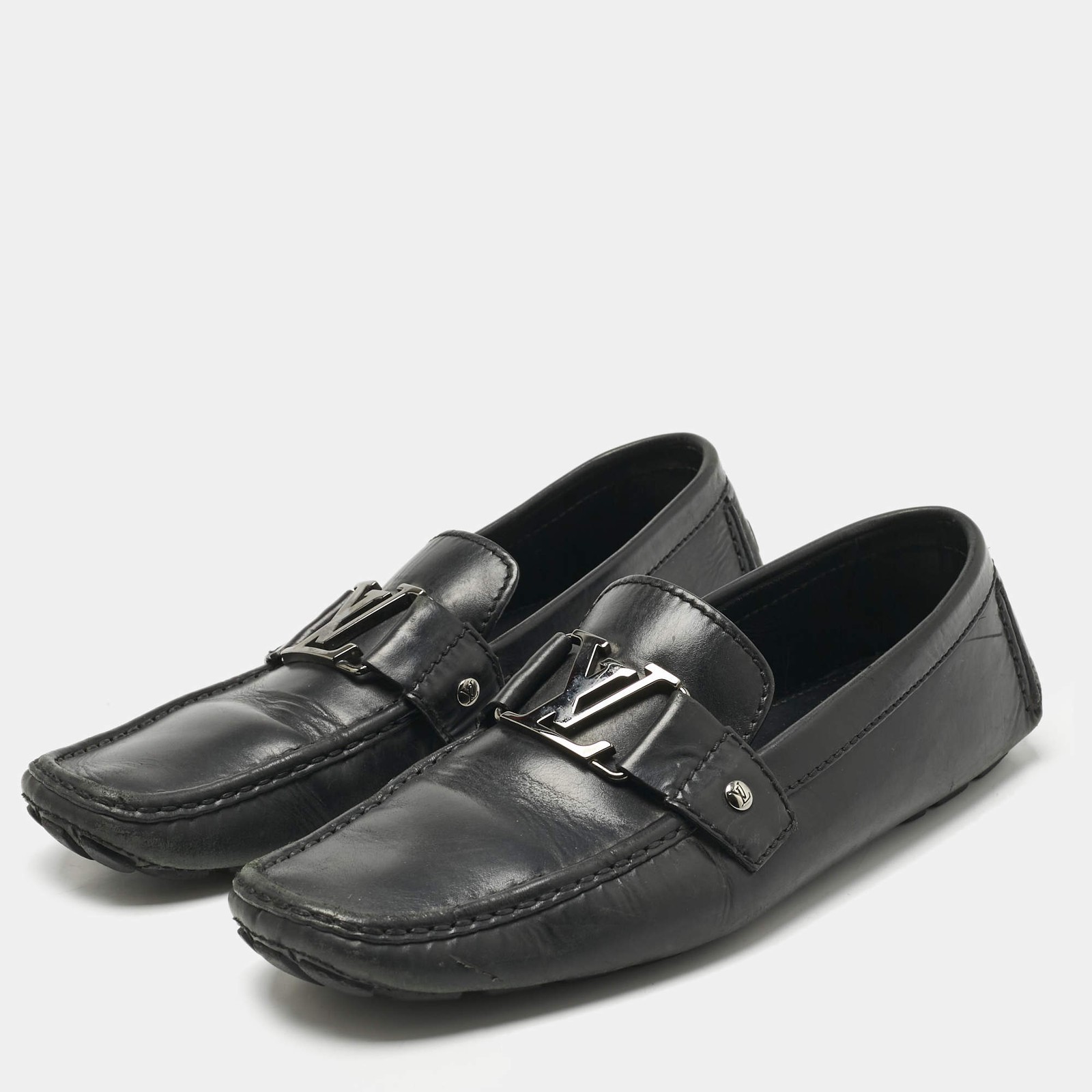Our eBay Store About Us Contact Us Add to Favorite Sellers Louis Vuitton Black Leather Monte Carlo Loafers Size 415 Crafted from supple black leather, Louis Vuitton’s Monte Carlo loafers feature sleek stitching and a polished LV emblem. Slip-on ease meets refined elegance, making them an effortless staple for smart-casual dressing. Product Details Brand Louis Vuitton Color Black Includes The Luxury Closet Packaging Outsole Length 32 cm Outsole Width 11 cm Size UK 7.5 (EU 41.5/US 8.5) Certified by The Luxury Closet This item has gone through a detailed authentication process overseen by our experts. We offer a lifetime guarantee of authenticity on all our items. How We Check The in-house team of experts at The Luxury Closet is highly trained to verify the authenticity and the condition of the luxury products. They ensure that only 100% authentic items are put on sale.The evaluation process is unique with its own mix of assessment criteria and differs according to the category. Each item is evaluated based on the following combination of hallmarks, hardware, stitching, symmetry, material, craftsmanship, stamping, codes, hologram stickers, and packaging. Our authenticators also check if the items have been modified or amended (e.g., aftermarket diamonds, replaced batteries, repaired bags, etc.) International Buyers Import duties, taxes and charges are not included in the item price. These charges are the buyers responsibility. Please check with your country’s customs office to determine what these additional cost will be prior to buying.