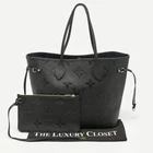 This Neverfull MM by Louis Vuitton is crafted from black Monogram Giant Empreinte leather, offering a contemporary take on the classic. Roomy yet refined, it’s your elevated companion from work to weekend.Certified by The Luxury Closet - This item has gone through a detailed authentication process overseen by our experts. We offer a lifetime guarantee of authenticity on all our items. Import duties, taxes and charges are not included in the item price. These charges are the buyers responsibility. Please check with your country’s customs office to determine what these additional cost will be prior to buying. Our eBay Store About Us Contact Us Add to Favorite Sellers Louis Vuitton Black Monogram Giant Empreinte Leather Neverfull MM Bag $2224.2 This Neverfull MM by Louis Vuitton is crafted from black Monogram Giant Empreinte leather, offering a contemporary take on the classic. Roomy yet refined, it’s your elevated companion from work to weekend. Product Details Brand Color Black Dimensions Material Leather Size Medium Outsole Width Outsole Length Heel Height Includes Certified by The Luxury Closet This item has gone through a detailed authentication process overseen by our experts. We offer a lifetime guarantee of authenticity on all our items. How We Check The in-house team of experts at The Luxury Closet is highly trained to verify the authenticity and the condition of the luxury products. They ensure that only 100% authentic items are put on sale.The evaluation process is unique with its own mix of assessment criteria and differs according to the category. Each item is evaluated based on the following combination of hallmarks, hardware, stitching, symmetry, material, craftsmanship, stamping, codes, hologram stickers, and packaging. Our authenticators also check if the items have been modified or amended (e.g., aftermarket diamonds, replaced batteries, repaired bags, etc.) International Buyers Import duties, taxes and charges are not included in the item price. These charges are the buyers responsibility. Please check with your country’s customs office to determine what these additional cost will be prior to buying.