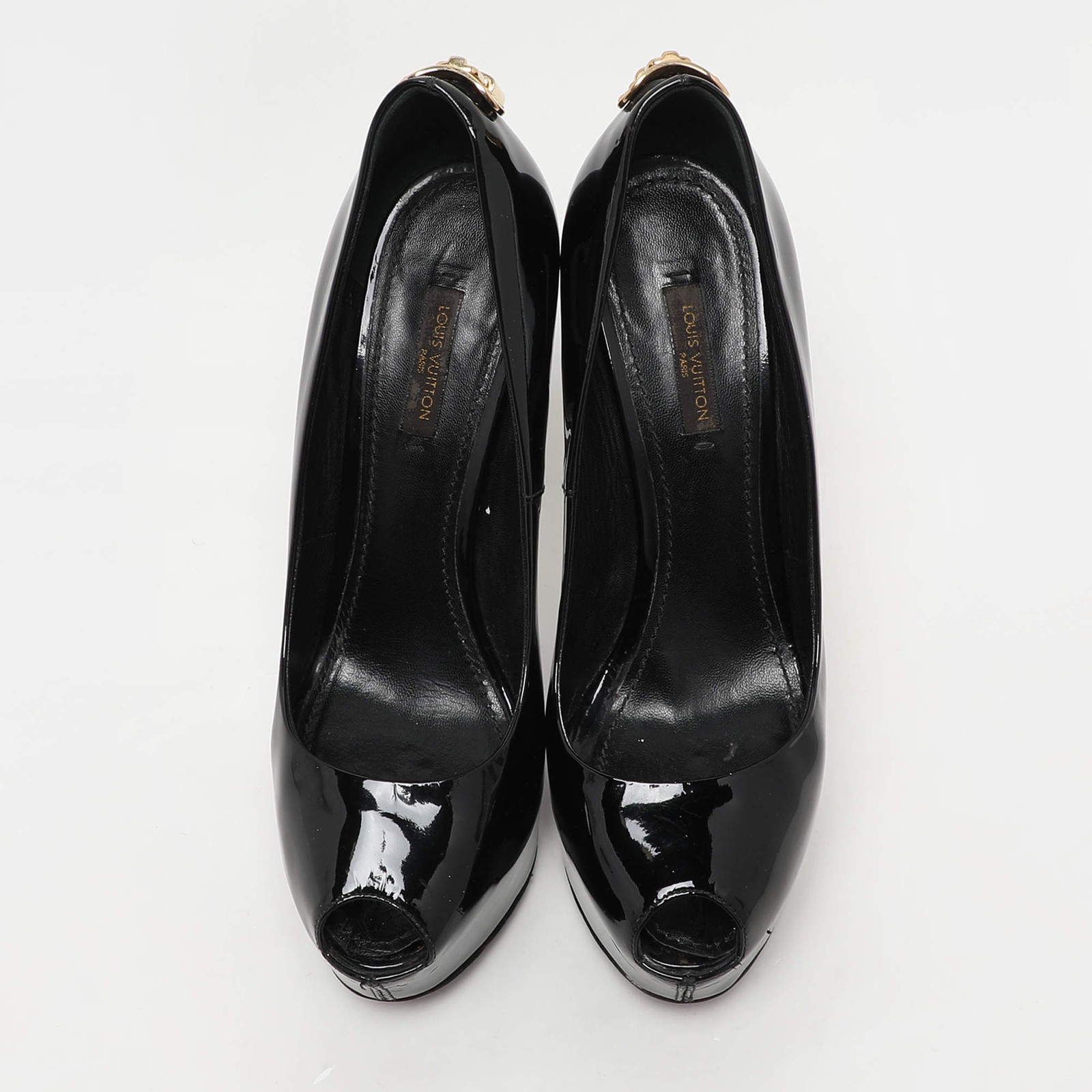 Our eBay Store About Us Contact Us Add to Favorite Sellers Louis Vuitton Black Patent Leather Oh Really Platform Pumps Size 38 These timeless Louis Vuitton pumps are meant to last you season after season. Crafted using black patent leather, they are designed with a sleek arch, peep toes, and 14.5 cm heels. Product Details Brand Louis Vuitton Color Black Includes Original Dustbag, Original Box Outsole Length 20 cm Outsole Width 7 cm Size 38 Certified by The Luxury Closet This item has gone through a detailed authentication process overseen by our experts. We offer a lifetime guarantee of authenticity on all our items. How We Check The in-house team of experts at The Luxury Closet is highly trained to verify the authenticity and the condition of the luxury products. They ensure that only 100% authentic items are put on sale.The evaluation process is unique with its own mix of assessment criteria and differs according to the category. Each item is evaluated based on the following combination of hallmarks, hardware, stitching, symmetry, material, craftsmanship, stamping, codes, hologram stickers, and packaging. Our authenticators also check if the items have been modified or amended (e.g., aftermarket diamonds, replaced batteries, repaired bags, etc.) International Buyers Import duties, taxes and charges are not included in the item price. These charges are the buyers responsibility. Please check with your country’s customs office to determine what these additional cost will be prior to buying.