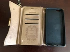 PHONE CASE HAS SOME DAMAGE!!! PLEASE CHECK OUT ALL PHOTOS!!! The Louis Vuitton Brown Monogram Folio-style Phone Wallet Case 6G5.5 is a stylish and luxurious accessory designed for women. Made by the renowned brand Louis Vuitton, this wallet features a signature brown monogram logo design that adds a touch of sophistication. It includes credit card slots for easy organization and is designed in a folio style, making it convenient to use on the go. The wristlet style and logo accents further elevate this accessory, making it a must-have for any fashion-forward individual.
