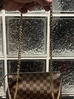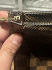 Louis Vuitton Damier Ebene Brown Toiletry 26 in fair condition. Exterior canvas is in good condition with small tear on the corner. Tarnishing on hardware. Inside is not sticky but with visible ink stain and marks. Peeling on various areas but again not sticky. No smell. Serial number is not visible. this was authenticated by real authentication. I will add an organizer and unbranded gold chain to use as a crossbody. No returns accepted. Please look at the pictures and message me for questions. I’d be happy to provide more pictures if requested