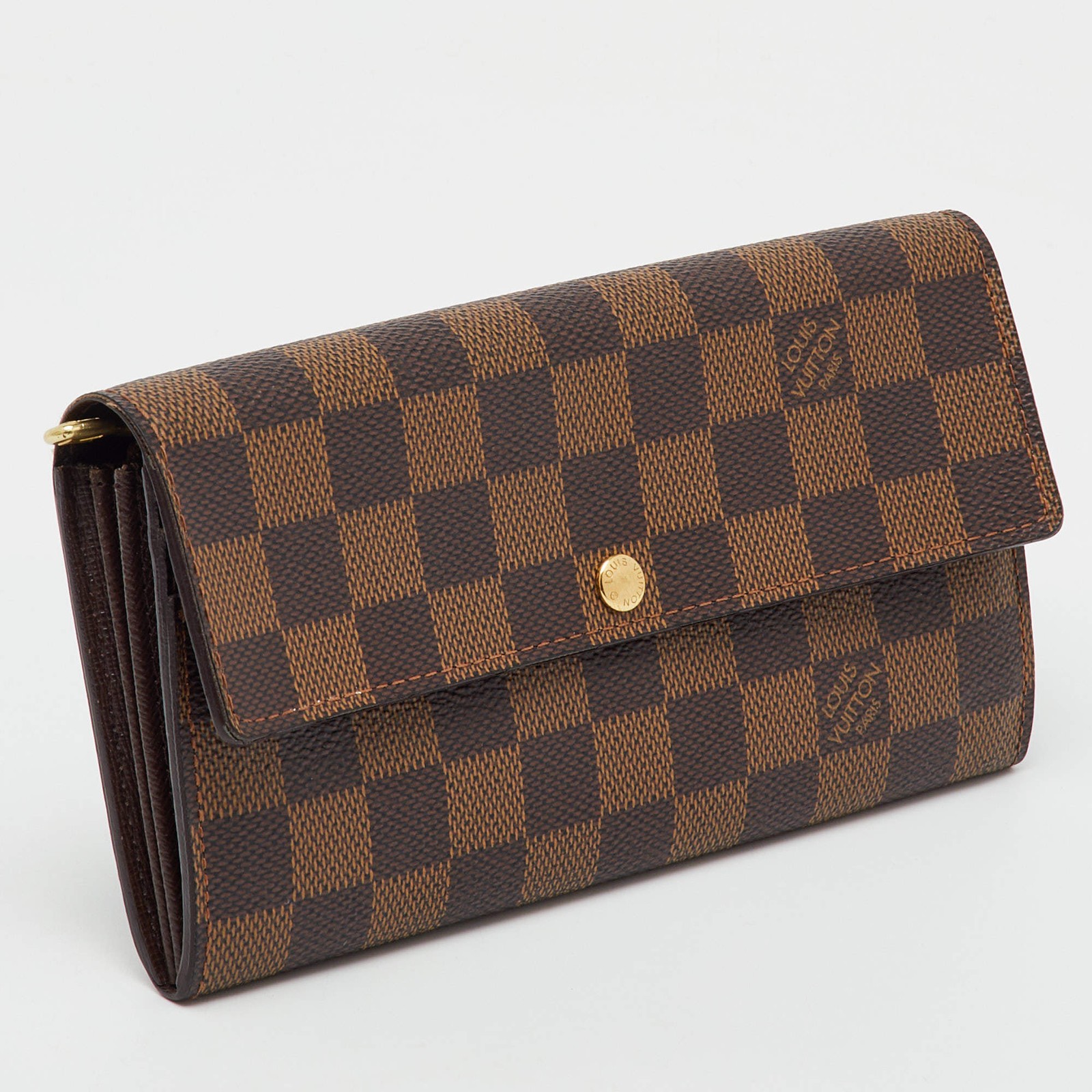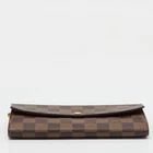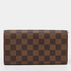 Our eBay Store About Us Contact Us Add to Favorite Sellers Louis Vuitton Damier Ebene Canvas Sarah Long Wallet Crafted from the signature Damier Ebene Monogram Vernis, this Louis Vuitton Sarah wallet is a valuable accessory. Its compartmentalized interior is perfect to store your monetary essentials, and the branded gold-tone motif on the front adds exclusivity to the wallet. Product Details Brand Louis Vuitton Color Brown Includes The Luxury Closet Packaging Material Leather Certified by The Luxury Closet This item has gone through a detailed authentication process overseen by our experts. We offer a lifetime guarantee of authenticity on all our items. How We Check The in-house team of experts at The Luxury Closet is highly trained to verify the authenticity and the condition of the luxury products. They ensure that only 100% authentic items are put on sale.The evaluation process is unique with its own mix of assessment criteria and differs according to the category. Each item is evaluated based on the following combination of hallmarks, hardware, stitching, symmetry, material, craftsmanship, stamping, codes, hologram stickers, and packaging. Our authenticators also check if the items have been modified or amended (e.g., aftermarket diamonds, replaced batteries, repaired bags, etc.) Please note that this handbag may have a perfume scent, as it was stored and packaged in Dubai where such fragrances are commonly used. International Buyers Import duties, taxes and charges are not included in the item price. These charges are the buyers responsibility. Please check with your country’s customs office to determine what these additional cost will be prior to buying.