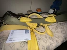 The Louis Vuitton Denim Neo Speedy is a designer crossbody bag featuring a monogram pattern on denim exterior material. It has a zip closure, double handles with a yellow leather strap, gold hardware, and a fabric lining. This stylish bag comes with a detachable strap and lock, making it a versatile accessory for women looking to add a touch of luxury to their outfit. Made in France, this Louis Vuitton bag is a fashionable and timeless piece that exudes sophistication and high-end craftsmanship.
