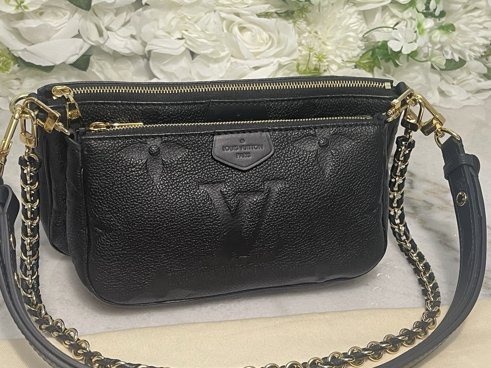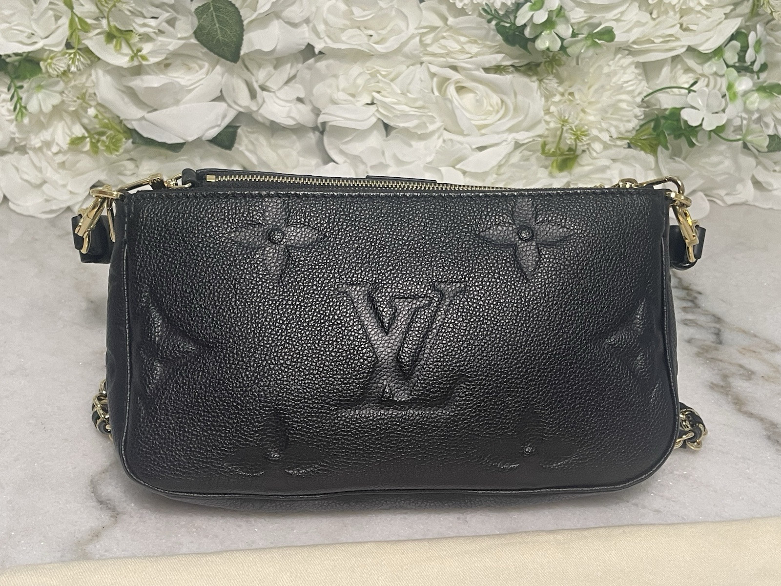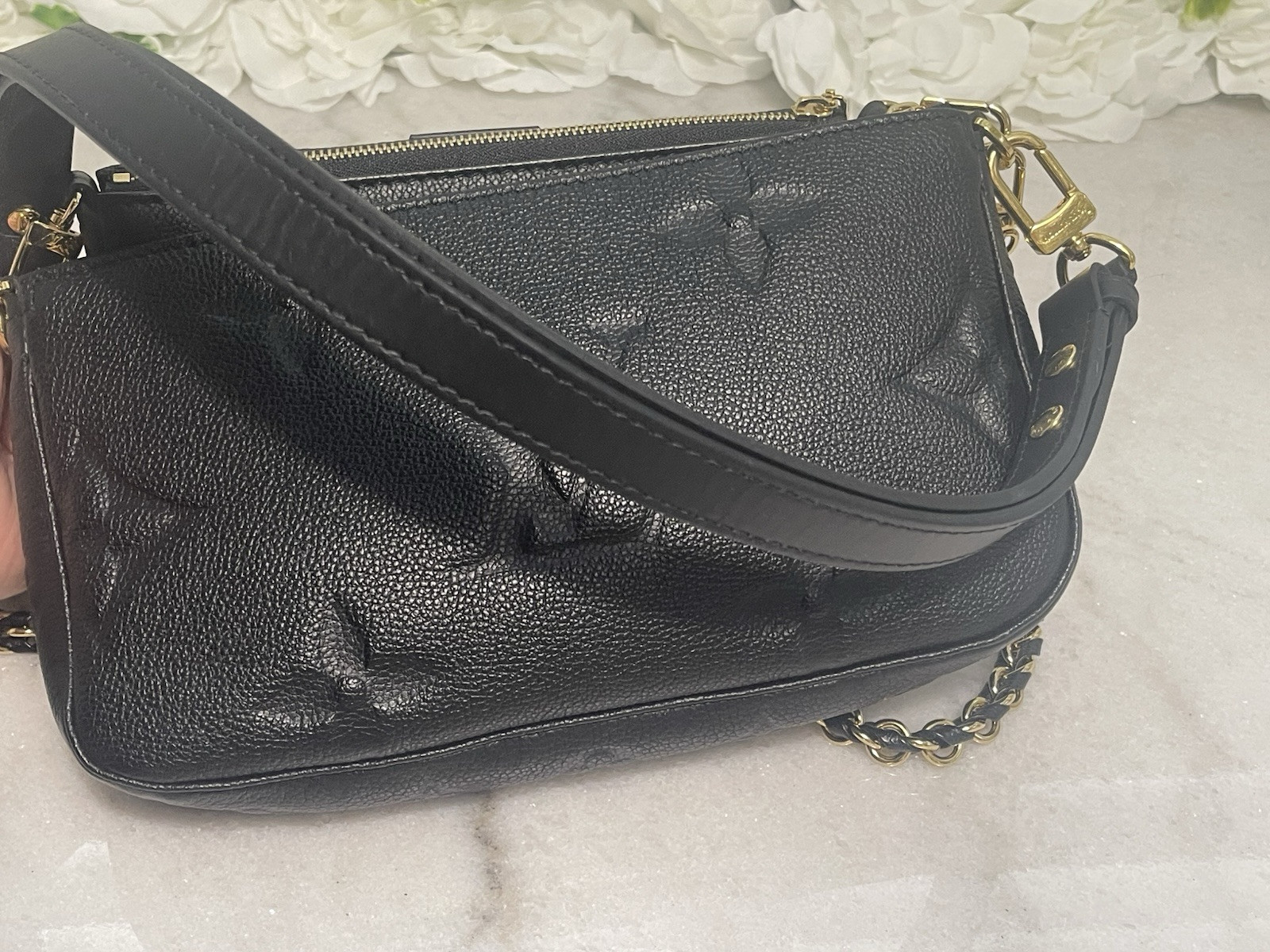 Absolutely love this Louis Vuitton Multi Pochette! The empreinte leather is so luxurious and the noir color goes with everything. It’s in perfect condition, comes with everything—box, tags, dust bag—plus the microchip for peace of mind. Such a steal compared to retail price! The versatility is amazing—so many ways to style it. A must-have for any LV lover!